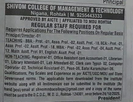 Shivom College of Management and Technology (Approved by UGC, Affiliated to Maharishi Dayanand University, Rohtak)Accredited with Grade ‘A+’ by NAAC, was established with the primary objective of imparting high-quality management education with a strong emphasis on both academic rigor and practical relevance. The institution is committed to nurturing future business leaders by fostering a dynamic environment that encourages intellectual growth, analytical thinking, and ethical business practices.
